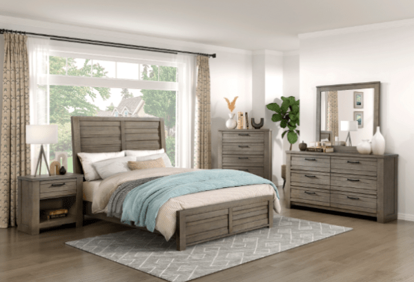 Rustic styling combined with hints of industrial practicality create the Longview Collection’s straightforward look making for a perfect addition to your bedroom. A gray finish is utilized over birch veneer, highlighting the wood’s grain. The Eastern King bed's planked framing gives the group a rusticated aesthetic with the panel headboard and low-profile footboard presenting as a bold centerpiece to your bedroom.